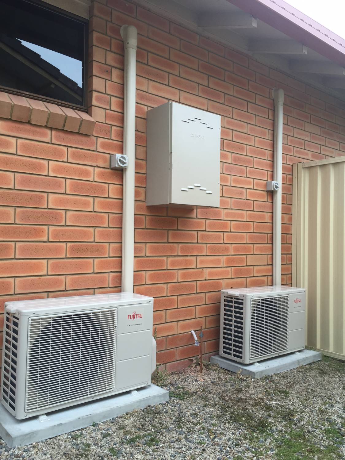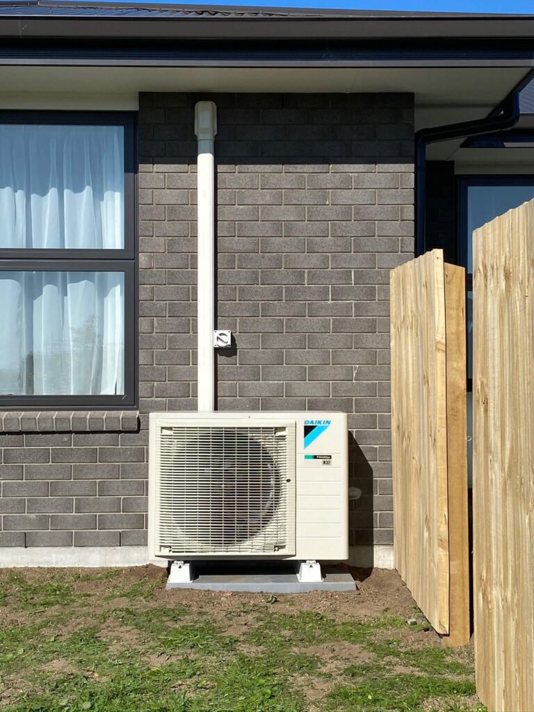 - Outdoor unit mounted on PVC feet,(if concrete ground) and 800mm x 400mm polyslab base supplied if grass or garden ground