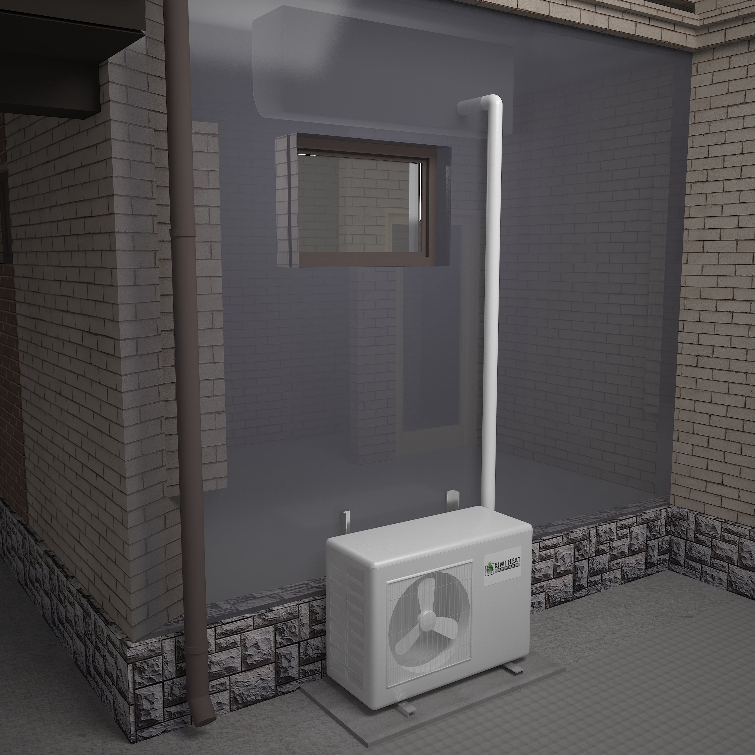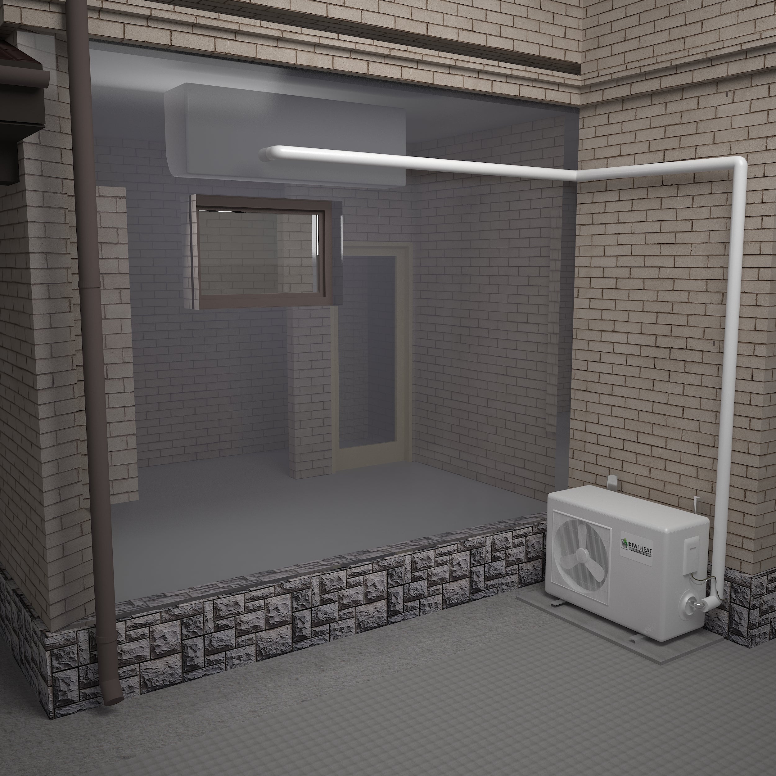 - Indoor unit installed on exterior facing wall with max 2.5m pipework between indoor and outdoor unit